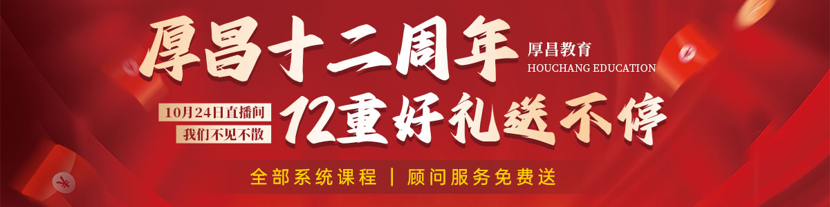 亲爱的同学们: 时光如梭,初心不改。转眼间,厚昌教育已经走过了十三年的征程。 这十三年,是信任与陪伴的十三年。感谢每一位学员的选择,是你们让“厚昌”两个字充满了意义。从最初的探索到如今的深耕,我们聚焦于营销领域,致力于让营销变简单。 有幸见...