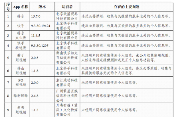 针对人民群众反映强烈的App非法获取、超范围收集、过度索权等侵害个人信息的现象,国家互联网信息办公室依据《中华人民共和国网络安全法》《App违法违规收集使用个人信息行为认定方法》《常见类型移动互联网应用程序必要个人信息范围规定》等法律和有关规定,组织对短视频、浏览器、求职招聘等常见类型公众大量使用的部分App的个人信息收集使用情况进行了检测。其中发现,包括抖音在内的105款App违法违规收集使用个人信息。