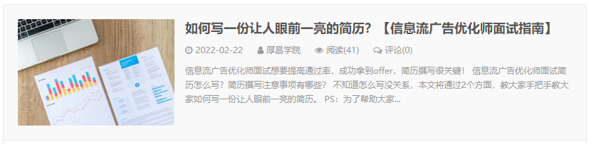 为此,专门整理了一篇文章,针对有经验、以及0经验2个不同的阶段,来教大家信息流广告优化师面试简历具体怎么写。