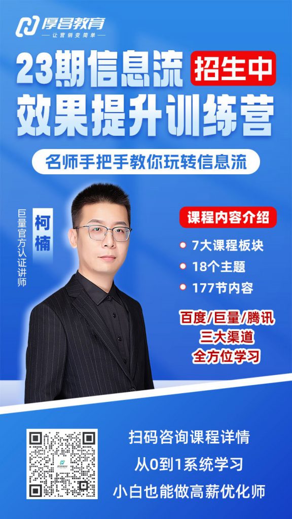 扫描下方二维码,快来一起学习柯楠老师的信息流学习课程,相信你会收获满满!
