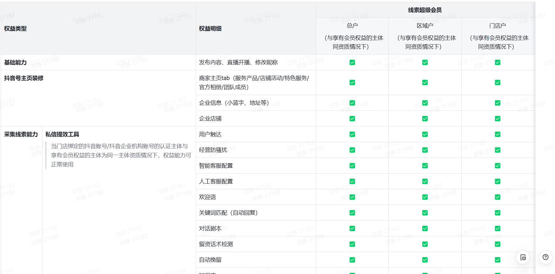 我这边已经拿到了详细的官方文档,如果你需要研究,可以在扫码添加助理领取一下《抖音来客|线索超级会员使用说明》 。